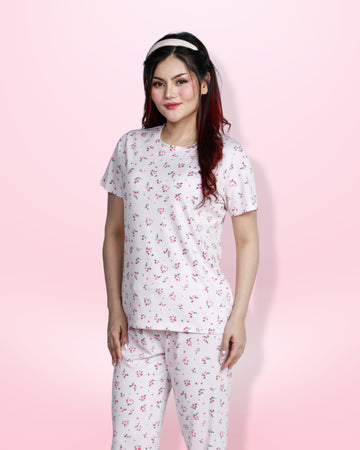 Women's 2 Piece All Over Printed Loungewear Set Short Sleeve Top & Pants | Casual Lounge Outfit, Soft Pajama Set, Summer Sleepwear for Women's