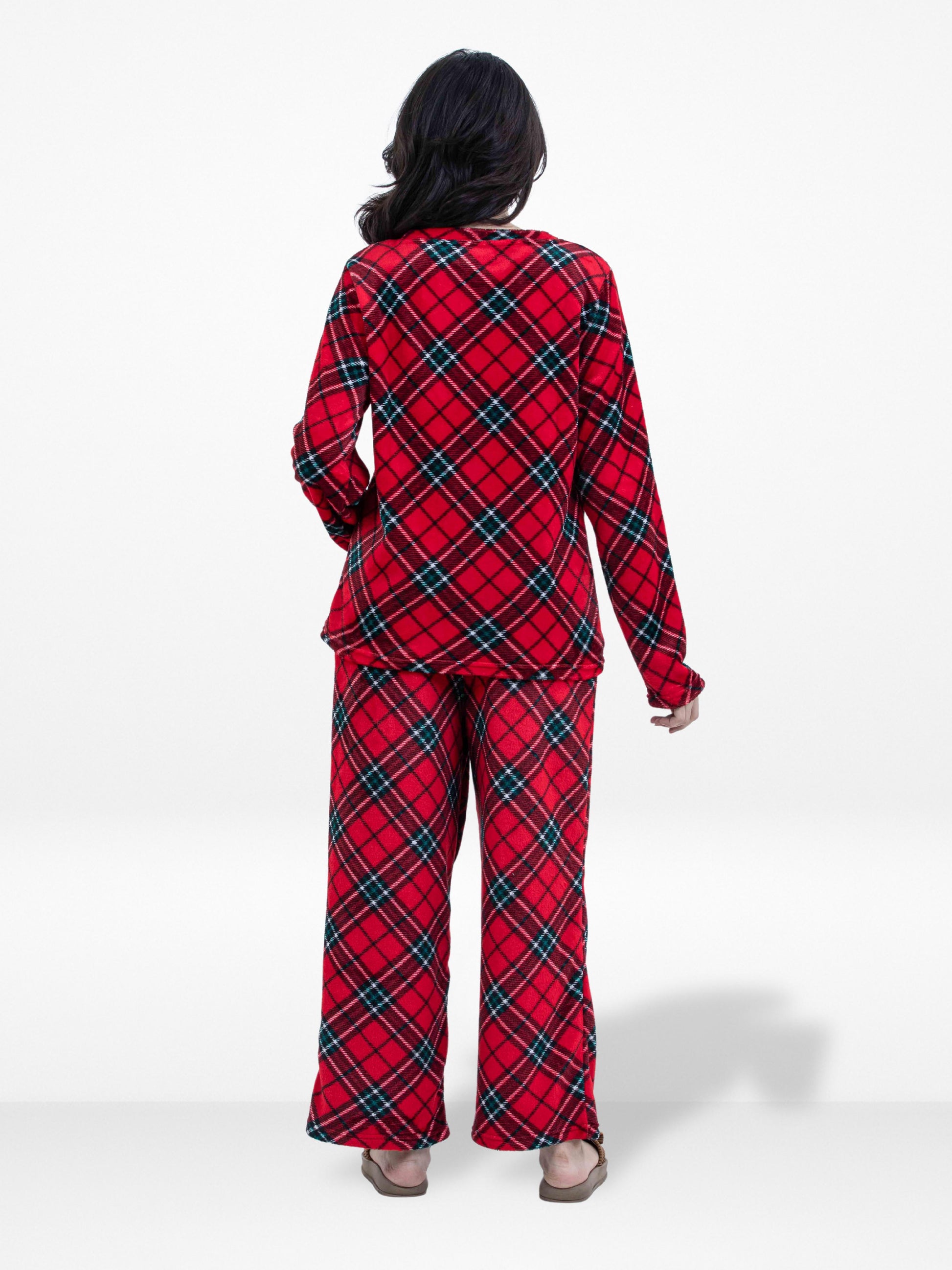 Women’s Red Stripe Printed Pyjama Set – Long Sleeve Top & Pants, Soft Comfortable Sleepwear, Cozy Winter Loungewear for Women