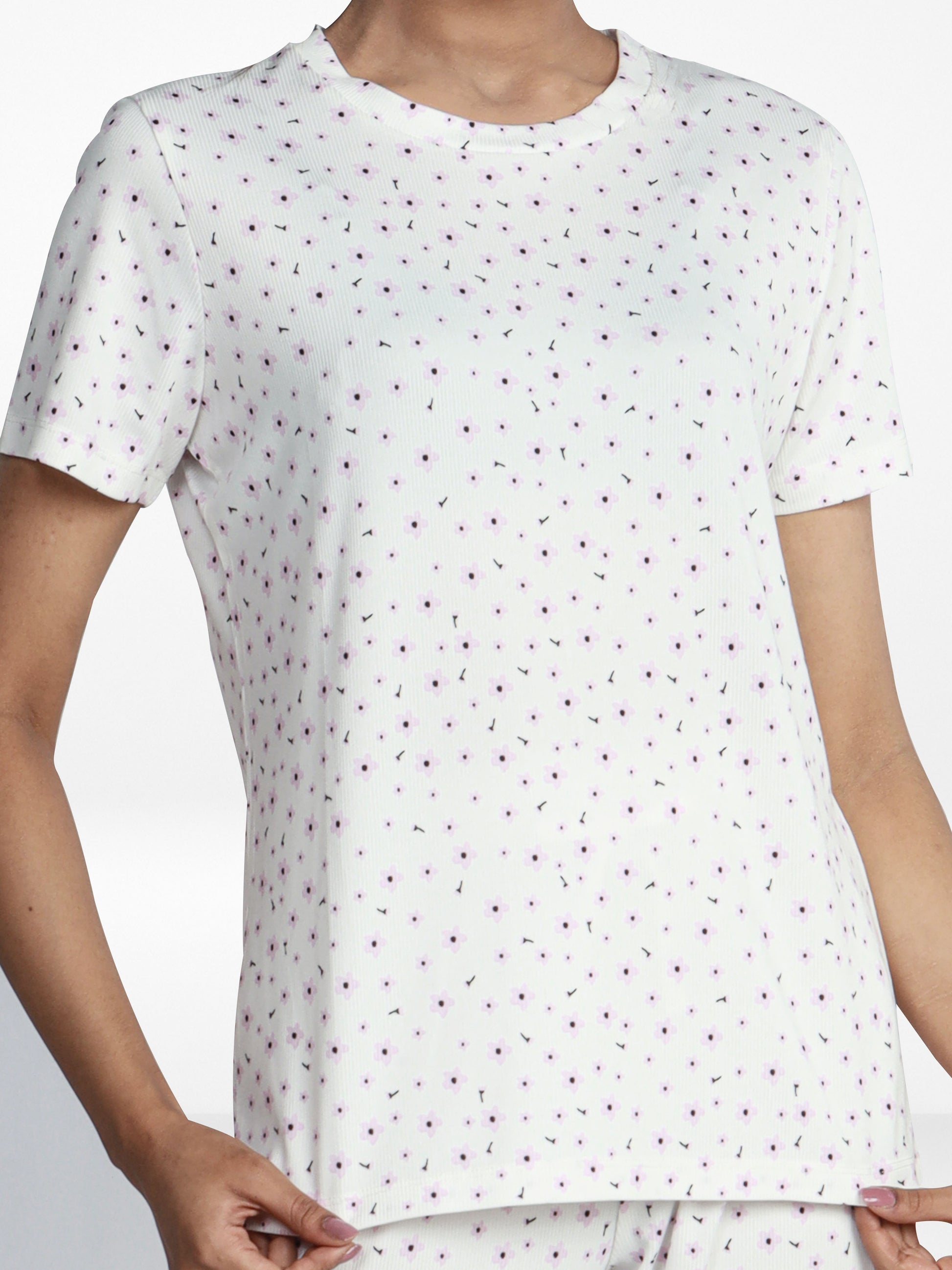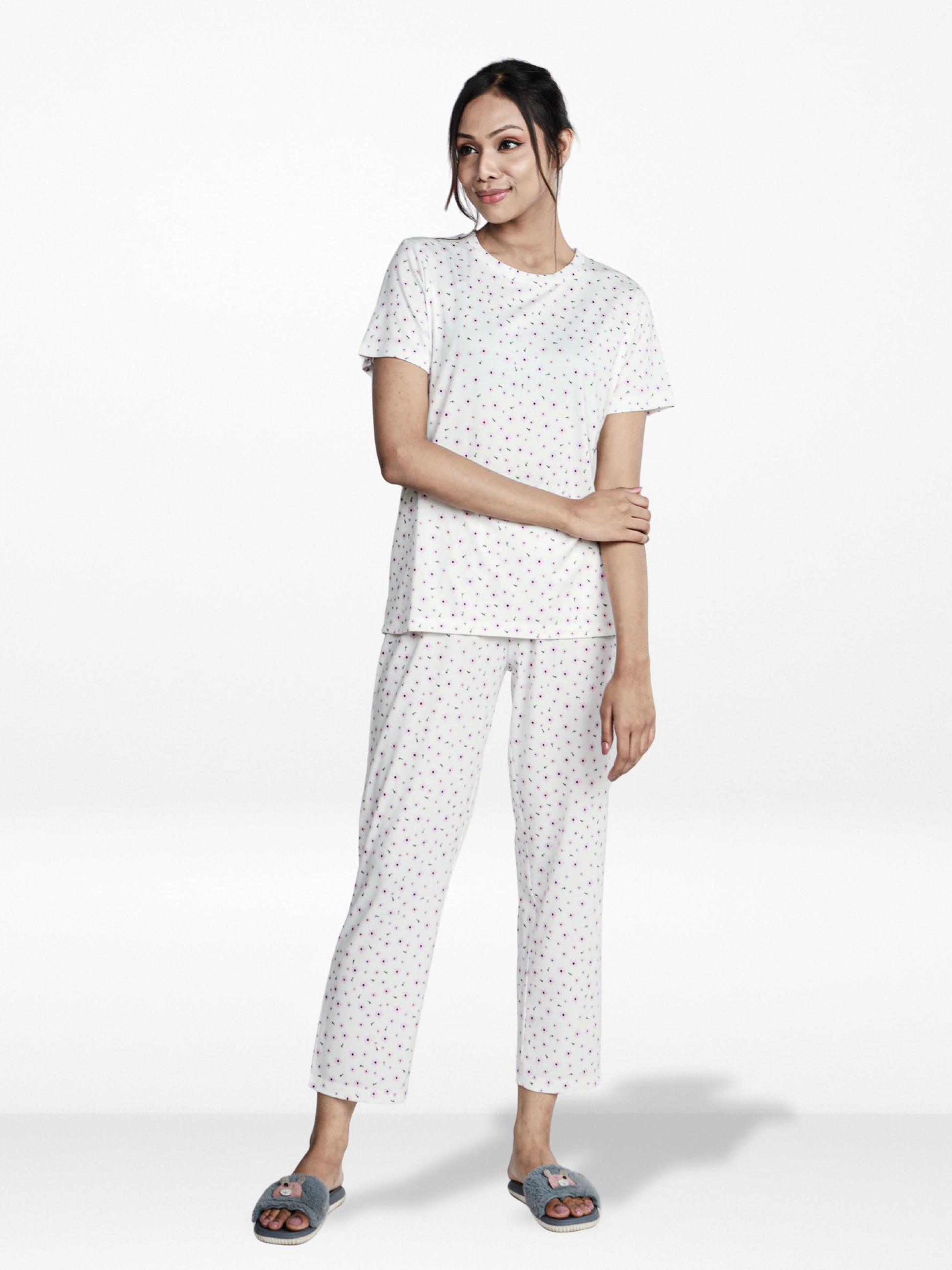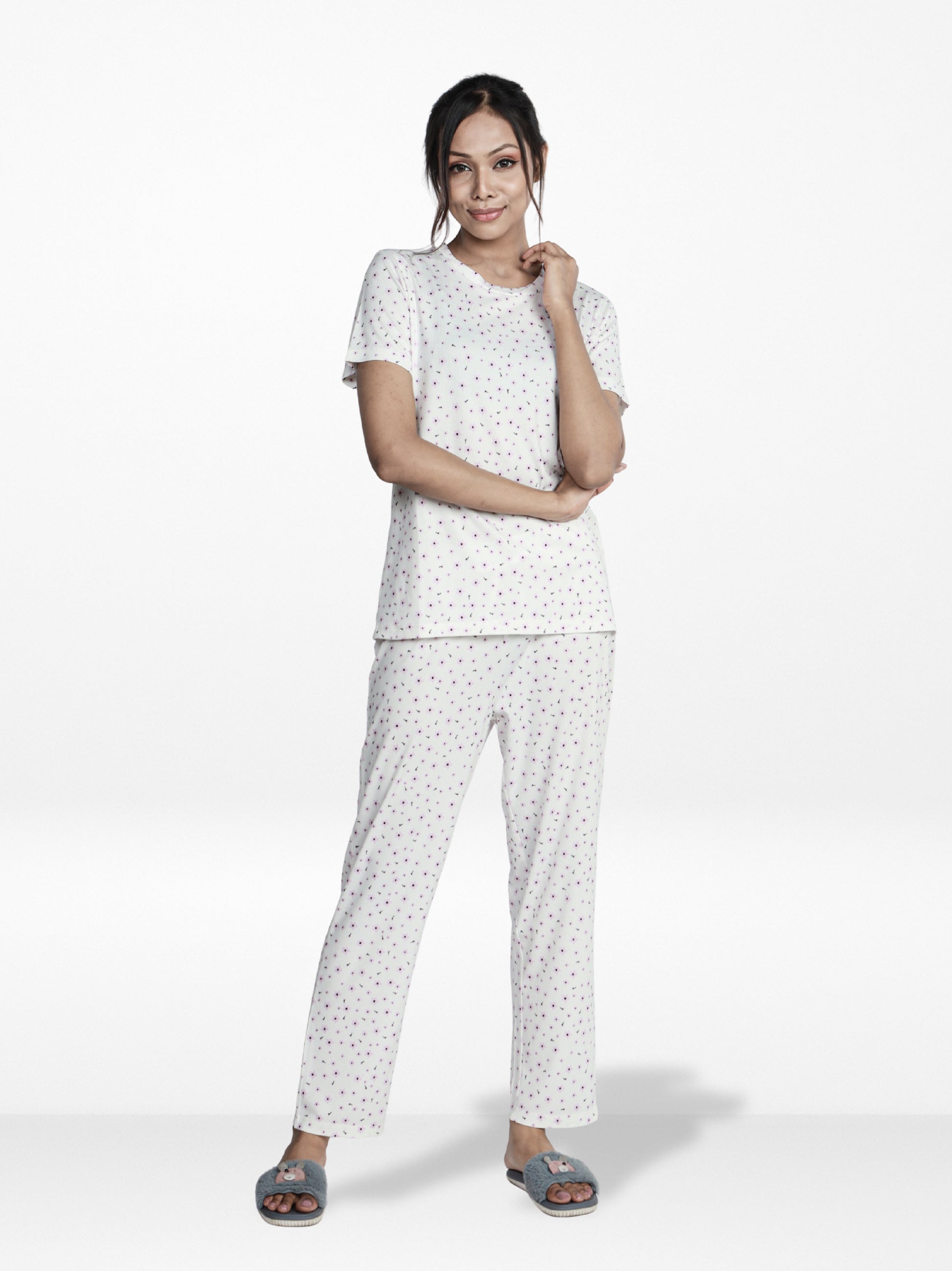 Women’s 2 Piece All Over Printed Loungewear Set – Short Sleeve Top & Pants | Casual Lounge Outfit, Soft Pajama Set, Summer Sleepwear for Women