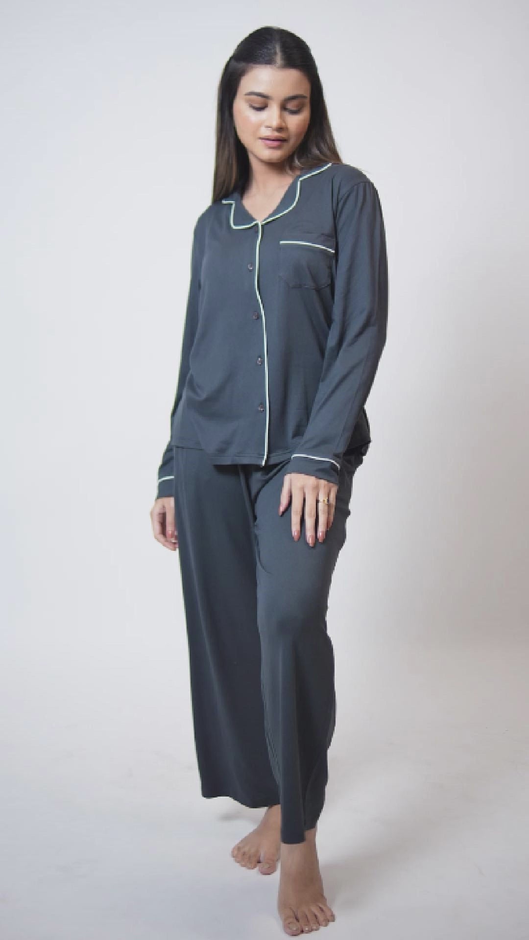 Women Solid Sleepwear Long Sleeve Pyjama Set
