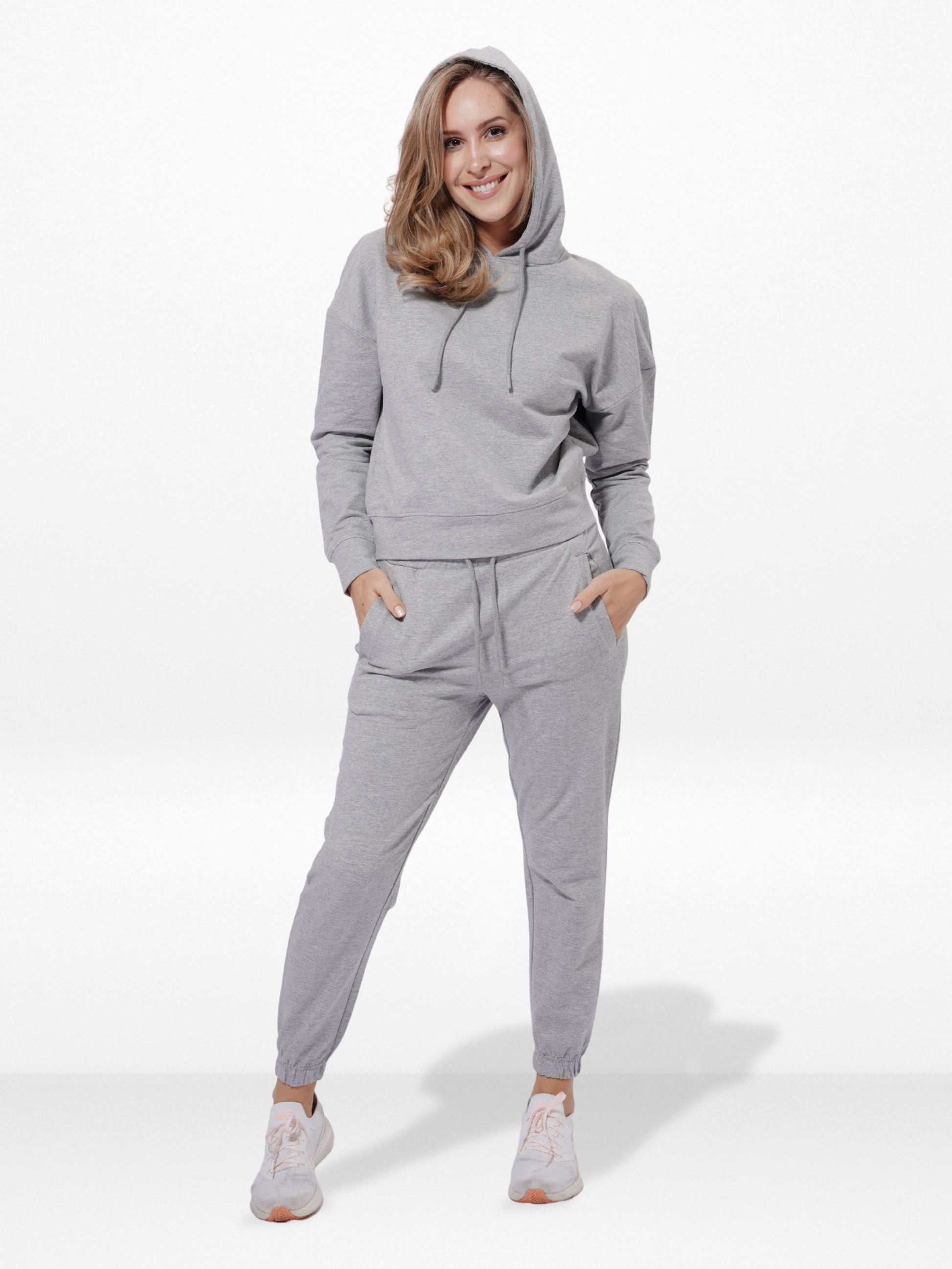 Women Grey Melange Hoodie and Joggers Set – Premium Cotton 2-Piece Tracksuit, Soft Comfortable Loungewear and Casual Outfit for Everyday Wear